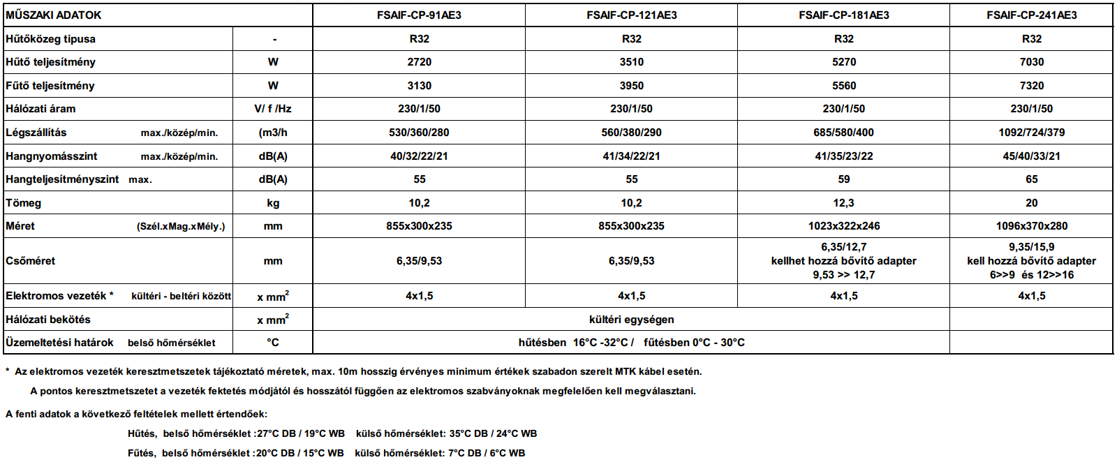 Felszerelés és beüzemelés díja bruttó 55.000 Ft, mely tartalmazza a kiszállást, a készülék helyszínre szállítását, a kültéri és beltéri egység felszerelését, elektromos betáp kiépítését aljzatba max. 5 méterig*, a kültéri tartókonzolt, rögzítő elemeket, a vákuumozást, a berendezés beüzemelését és azzal kapcsolatos dokumentumok kitöltését (pl.: beüzemelési jegyzőkönyv, garanciajegy...), valamint a takarítást.
