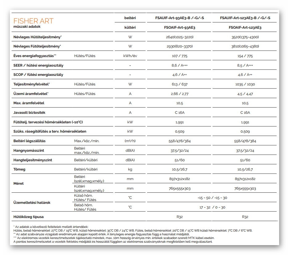 A Fisher FSAUIF-ART-93AE3 ART Antracit Inverteres Split klíma fontos tulajdonságai: