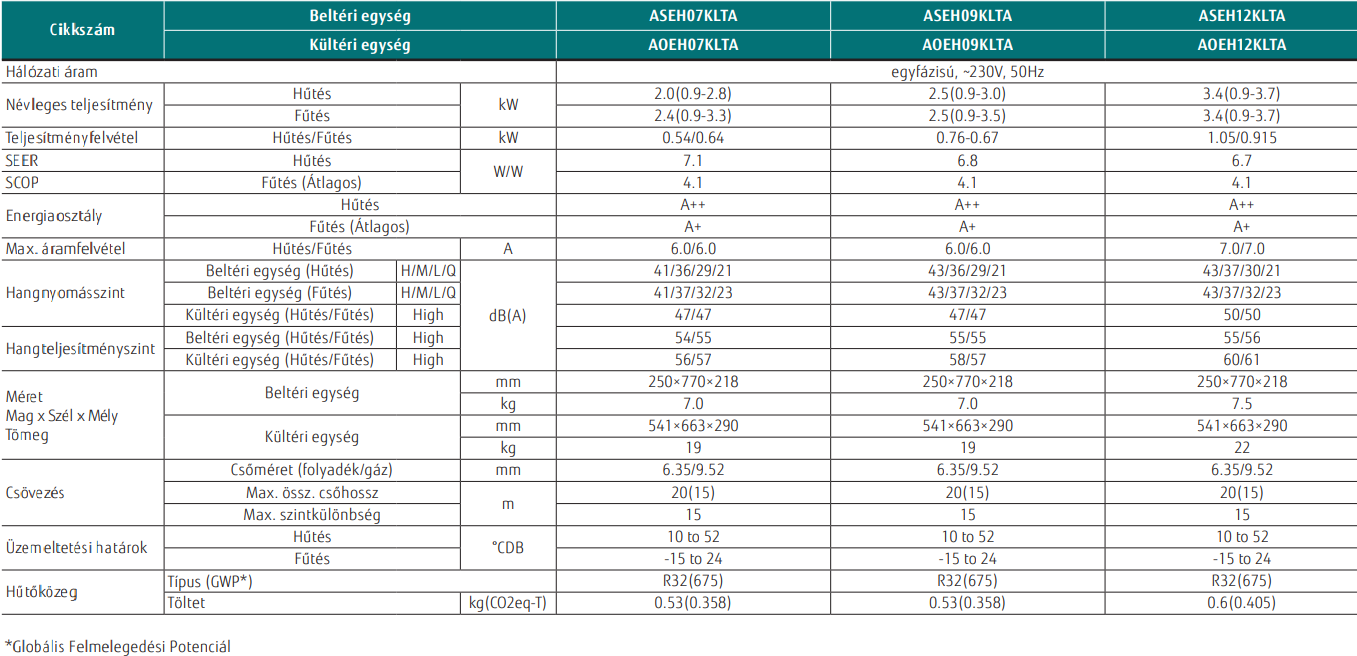• Hűtő teljesítmény : 2,0 (0.9-2.8) kW