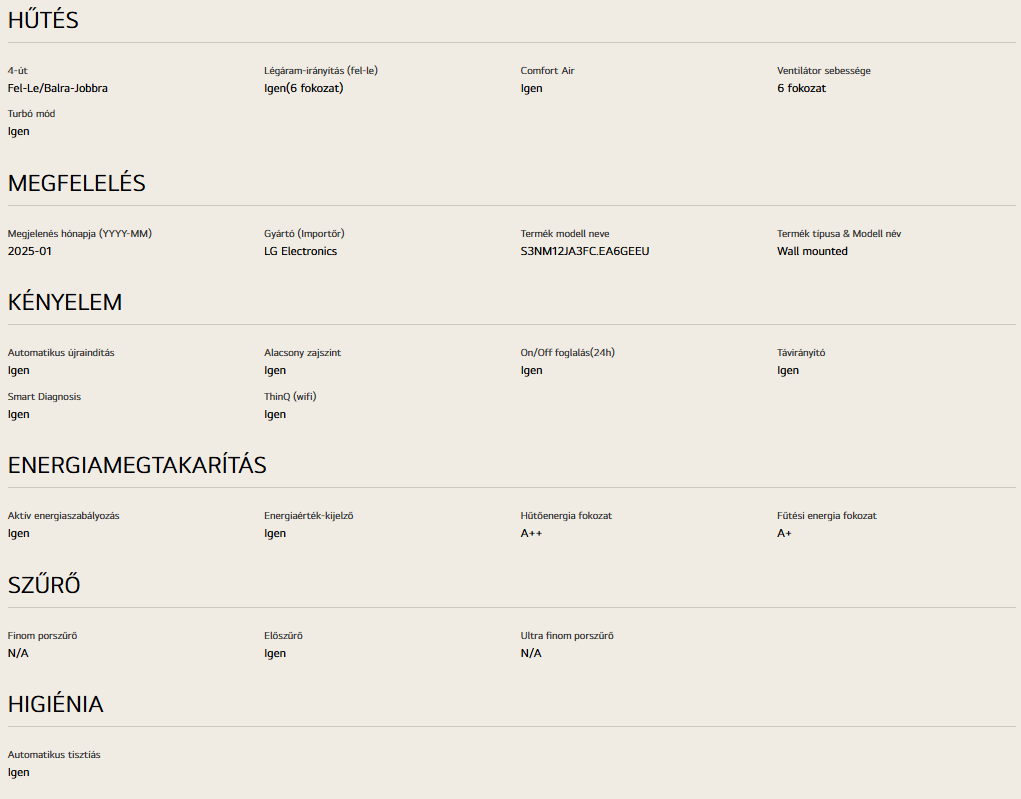 Az LG klímaberendezésekre 3 év teljes körű jótállás vonatkozik.